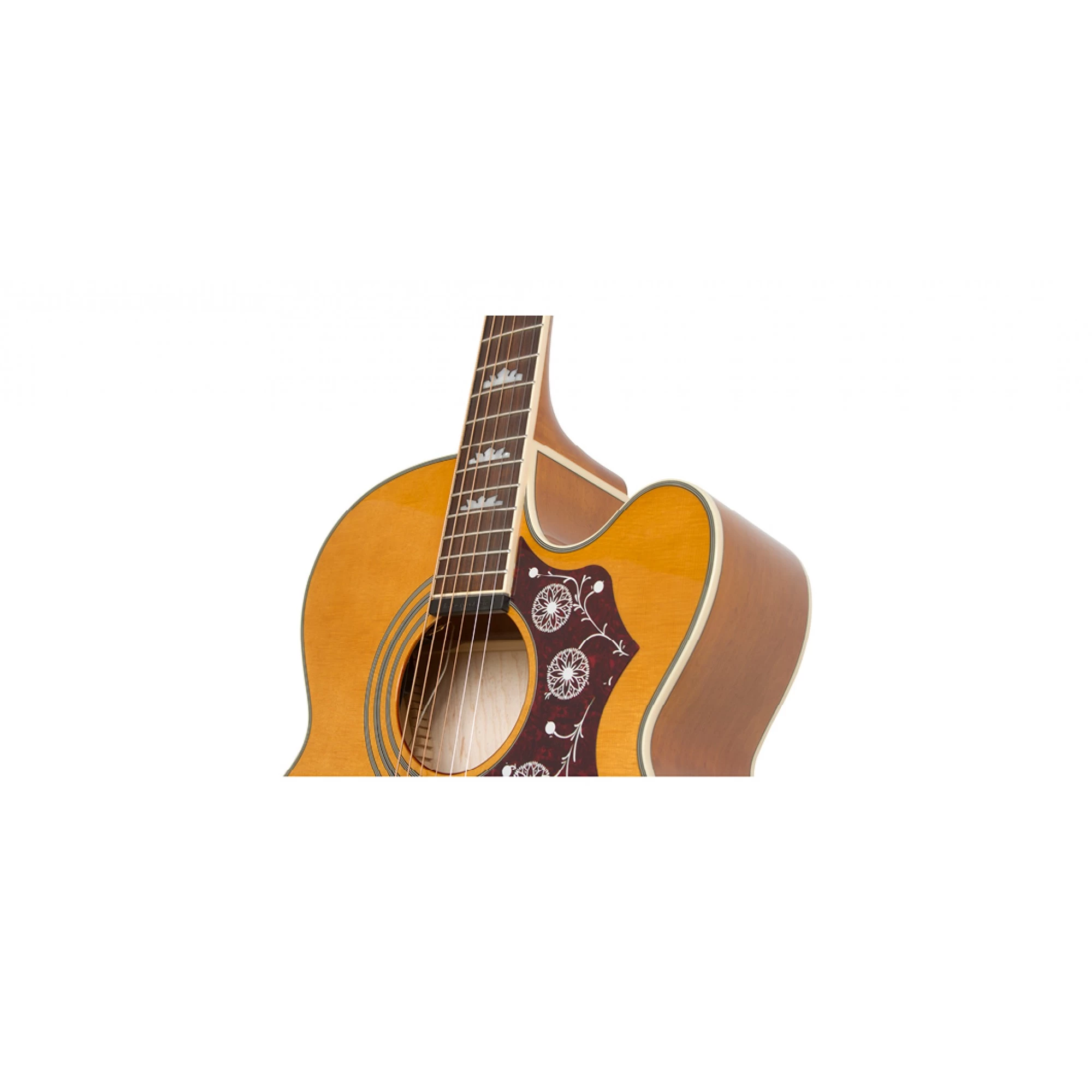 The Epiphone EJ-200SCE pushes the “King of the Flat Tops,” into the future with a spectacular cutaway for total upper fret access plus the eSonic2™ preamp system.