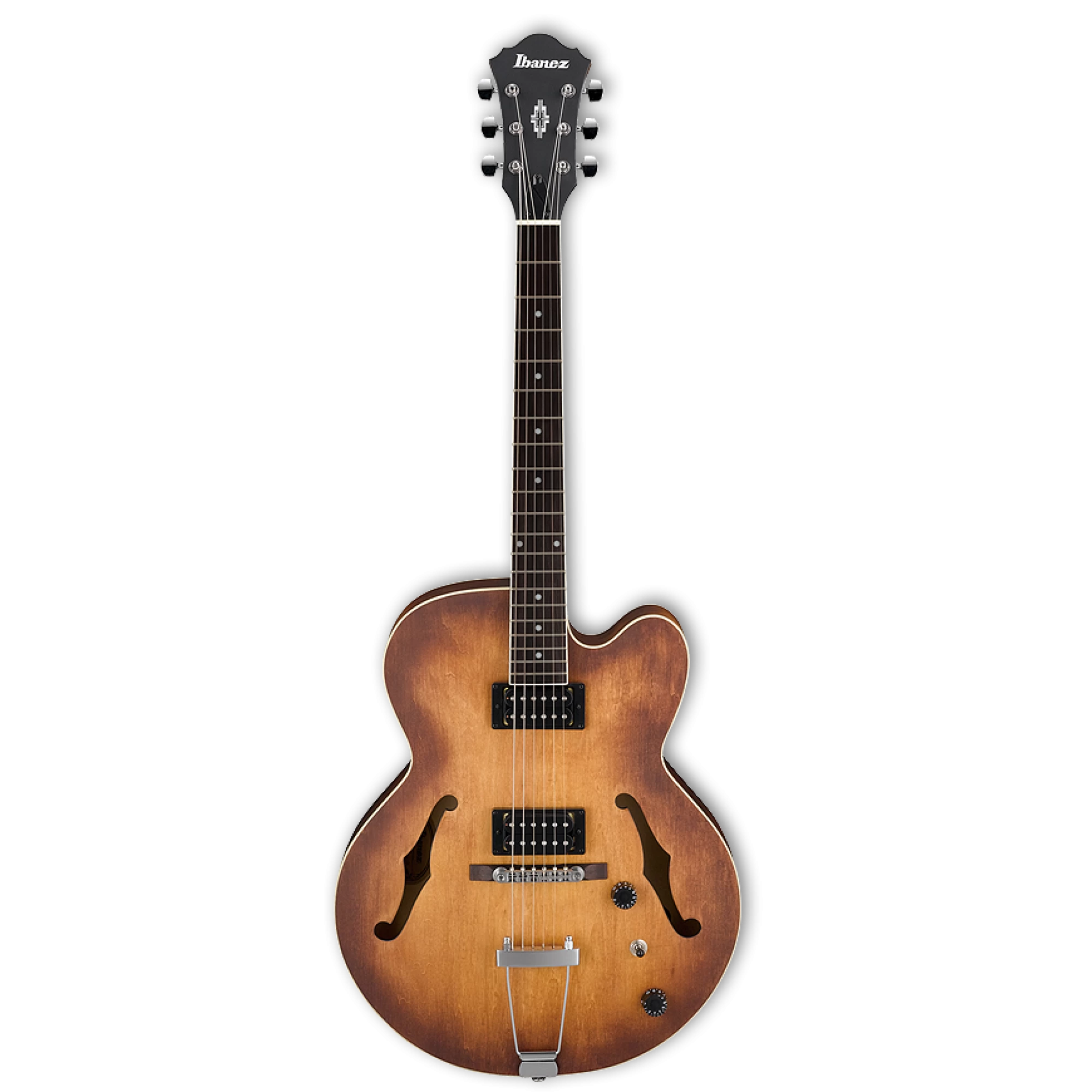The Ibanez AF55 Artcore hollow-body electric is an affordable guitar equipped with humbucking pickups and features a flat finish that also enhances the resonant qualities of the guitar.